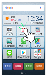 画面に軽く触れたまま、しばらくそのままにしておきます。画面が切り替われば指を離します。