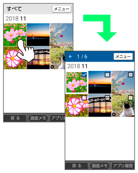 画面に軽く触れて、上下左右に指を軽くはじきます。