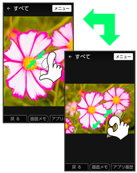 2本の指で画面に触れ、指を開いたり閉じたりします。