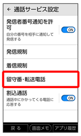 - 各サービスの設定画面で常に転送/通話中の着信時/不在着信/着信不能時