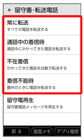 - 常に転送/通話中の着信時/不在着信/着信不能時