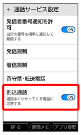 | 割込通話1 | 通話中にかかってきた電話を受けることができます。 | |