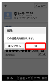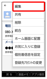 内部ストレージの空き容量が少ないと、連絡先の編集/削除ができない場合があります。ご注意ください。