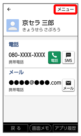 - お気に入りから削除する場合は、連絡先詳細画面でメニュー