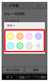 - メモの入力画面でカラーを設定すると、メモ帳一覧画面で、対象のメモの背景が設定したカラーの色で表示されます。