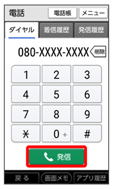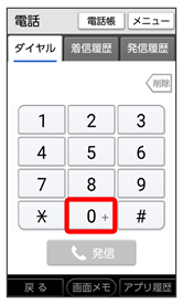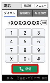 - 国番号のあとに相手の電話番号(先頭の「0」を除く)を入力