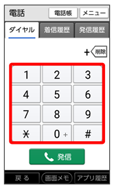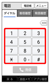 - 着信履歴/発信履歴画面が表示された場合は、ダイヤルをタップします。