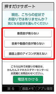 「サポート」アプリをタップするだけで、本機の症状を確認してくれます。症状を改善できない場合は、アプリから直接「かんたんスマホ カスタマーセンター」に電話をかけることもできます。「かんたんスマホ カスタマーセンター」への通話は無料となります。