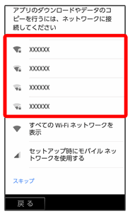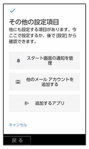 はじめて本機の電源を入れたときは、初期設定画面が表示され、Wi-Fi® やGoogle™ アカウントなどの設定を行うことができます。画面の指示に従って、各項目を設定してください。