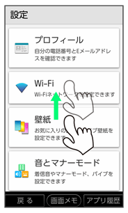 画面に軽く触れて、上下左右に指を軽くはじきます。