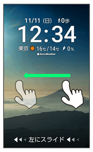 スタート画面は、本機の誤動作を防ぐための画面です。セキュリティを解除しないと、本機が使用できないようになっています。また、スタート画面には、メール受信など、いろいろな通知も表示されます。