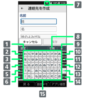 | 「ケータイ入力」に切り替えることができます。 | ||