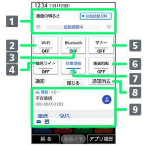- 閉じる/戻るをタップしても、通知パネルを閉じることができます。