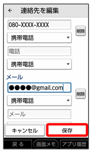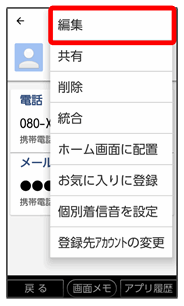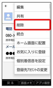 内部ストレージの空き容量が少ないと、連絡先の編集/削除ができない場合があります。ご注意ください。