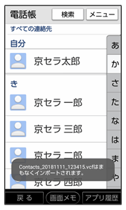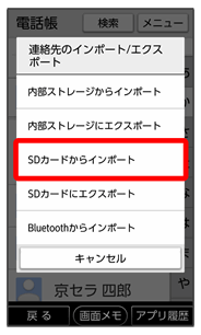 SDカードに保存(バックアップ)した電話帳を読み込み(インポート)できます。あらかじめ、SDカードを取り付けておいてください。詳しい手順は「SDカードを取り付ける」を参照してください。