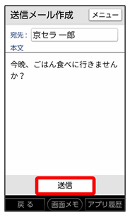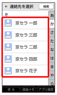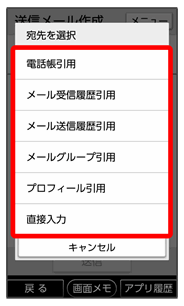 と操作すると、電話帳/メール受信履歴/メール送信履歴から宛先を選択できます。
