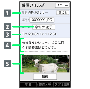 • 複数の宛先があるメールの宛先すべてに返信するときは、全員に返信をタップします。