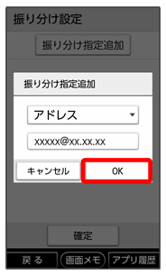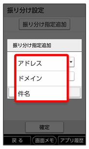 • 再度振り分け指定追加をタップすると、振り分け条件を追加できます。