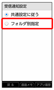 • 共通設定に従うをタップしたときは、共通設定に従った内容で通知されます。