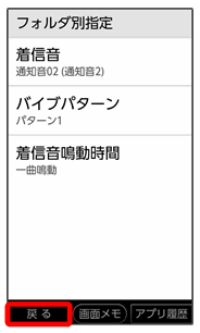 • ↓フォルダ別指定画面で着信音鳴動時間