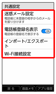 • ↓共通設定画面で迷惑メール設定