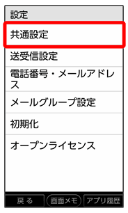 共通設定画面が表示されます。