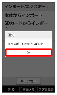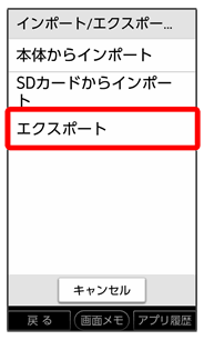 • SDカードを取り付けていないときは、本体メモリにエクスポートされます。