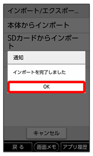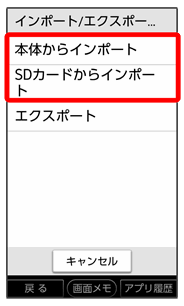 • ↓本体からインポートSDカードからインポート