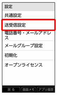 送受信設定画面が表示されます。