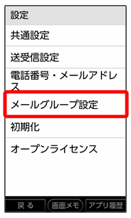 • ↓メールグループ設定画面でメニュー