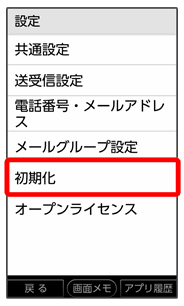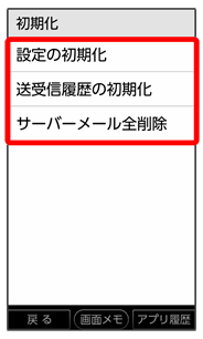 • ↓初期化画面で送受信履歴の初期化