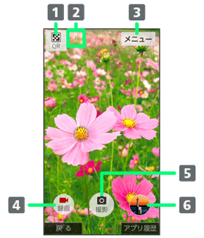 画面を右にフリックすると、設定メニューを表示してカメラの設定ができます。