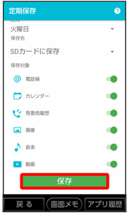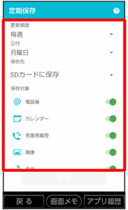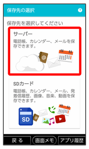 電話帳、カレンダー、発着信履歴、画像、音楽、動画のデータは、サーバー/SDカードにそれぞれ1日に各100個まで保存できます。