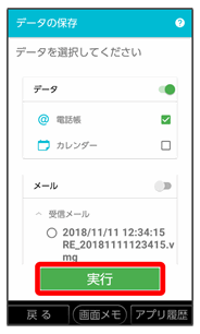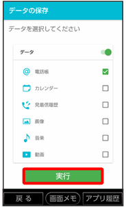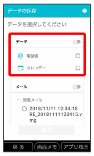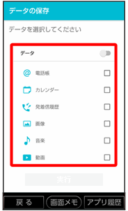 電話帳、カレンダー、発着信履歴、画像、音楽、動画のデータが保存できます。
