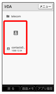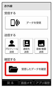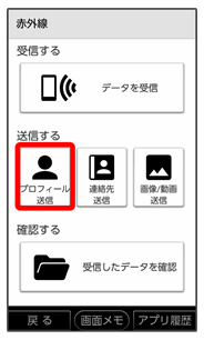 赤外線画面から、プロフィール、電話帳、その他ファイルを送信できます。
