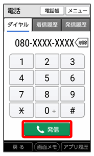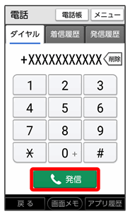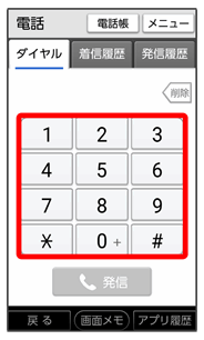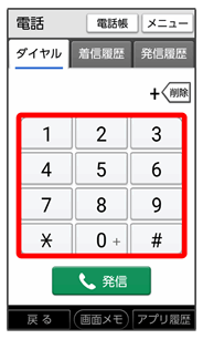 • ↓ダイヤルキーをタップして相手の電話番号を入力