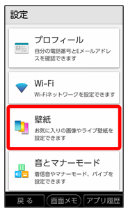 | ディスプレイ | 画面の明るさや壁紙などが設定できます。 | |