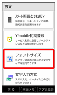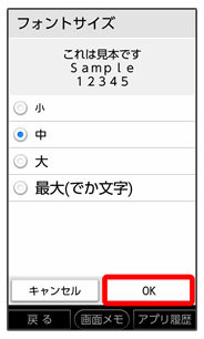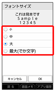| フォントサイズ | 画面に表示される文字の大きさを設定します。 | |
