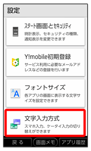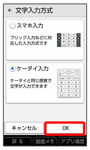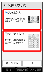 | 文字入力方式 | スマホ入力、ケータイ入力の切り替えができます。 | |