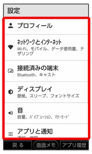 | ネットワークとインターネット | Wi-Fiやモバイル ネットワーク、データ使用量など、ネットワークやインターネットに関する設定ができます。 | |