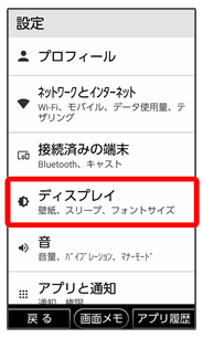 画面の明るさや壁紙などが設定できます。設定できる項目は次のとおりです。