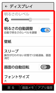 | 明るさのレベル | 画面の明るさを設定します。 | |