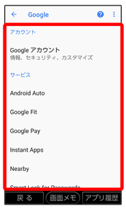 | Google Fit | ウォーキングやランニングなどの記録や体重管理などができるGoogle Fitに関する設定をします。 | |