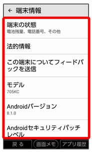 | Androidバージョン | Androidバージョンを確認します。 | |
