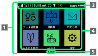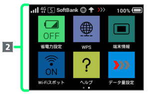 | 3 | 低速化が開始されるまでの残りデータ通信量が規定の値になった場合に表示されます。 |