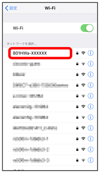 お買い上げ時のWi-Fi名は、「801HWa-」または「801HWb-」で始まる英数字です。