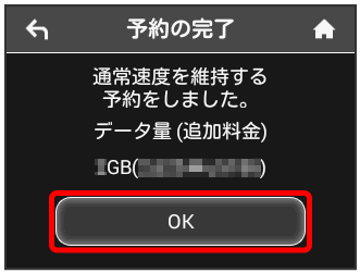 予約を完了した状態で、ご契約いただいているデータ通信量を利用した場合、自動で料金が発生し通常速度を維持します。