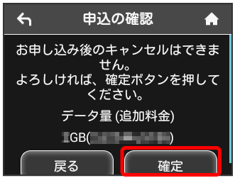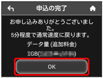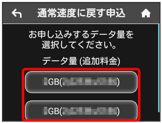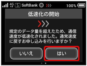 本機のタッチメニューから低速化を解除するお申し込みができます。