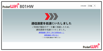 - この画面を表示しないようにするには、「次の低速化開始まで表示しない」にチェックを付けてください。次に通信速度が低速化されるまで、低速化中のブラウザ画面が表示されなくなります。