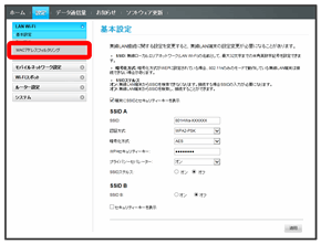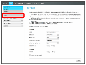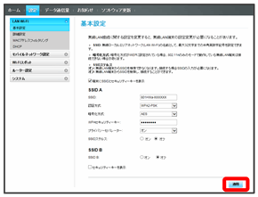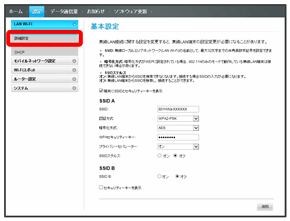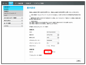 Wi-Fi名(SSID B)のLAN Wi-Fi基本設定が設定されます。